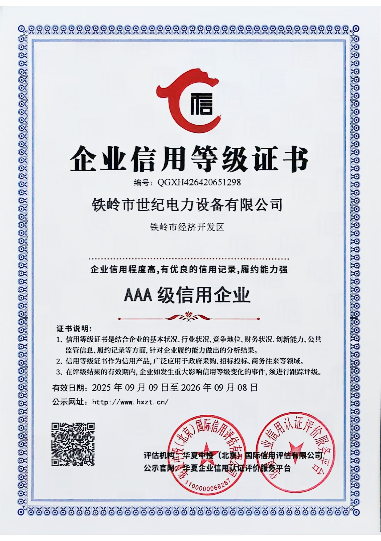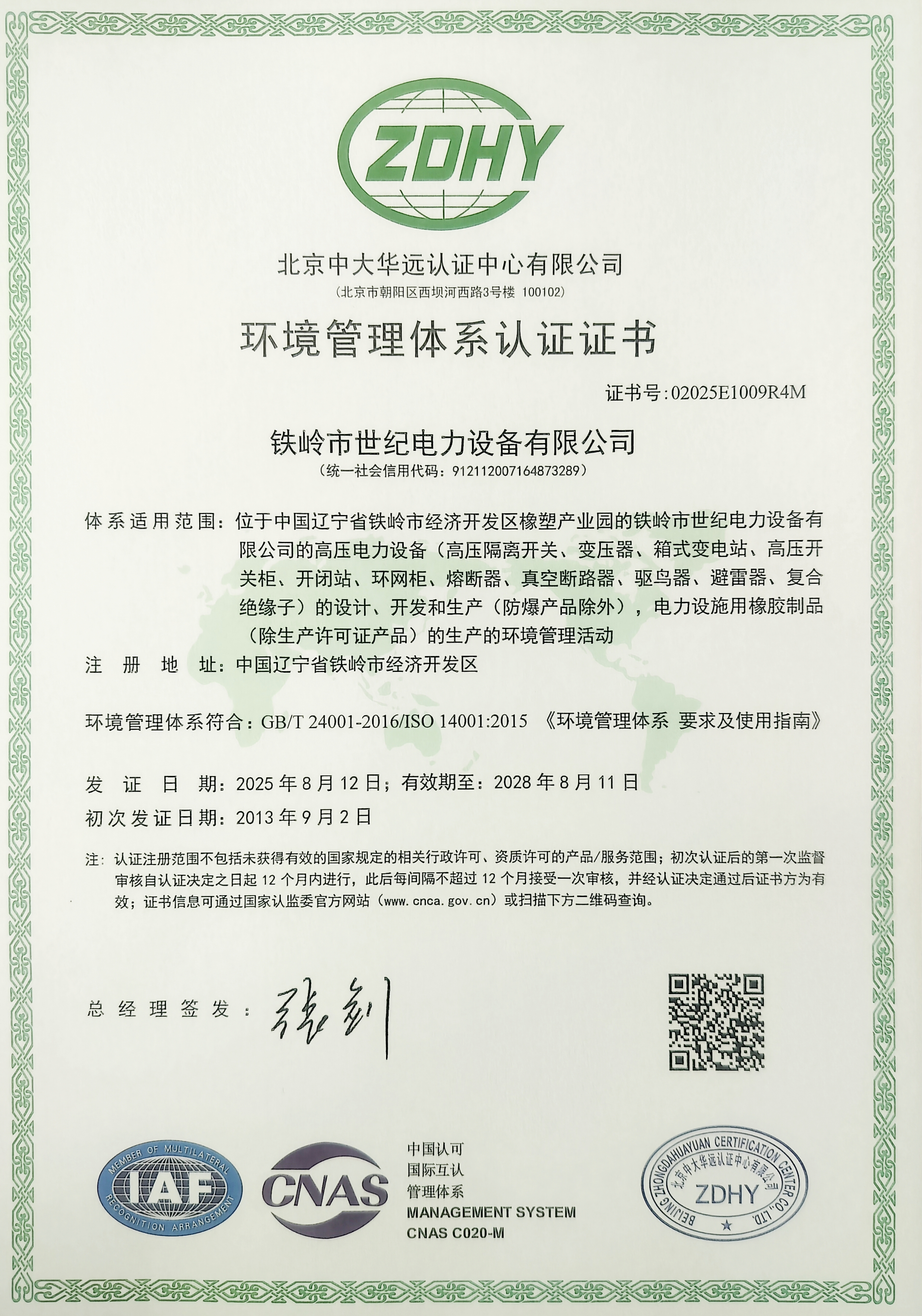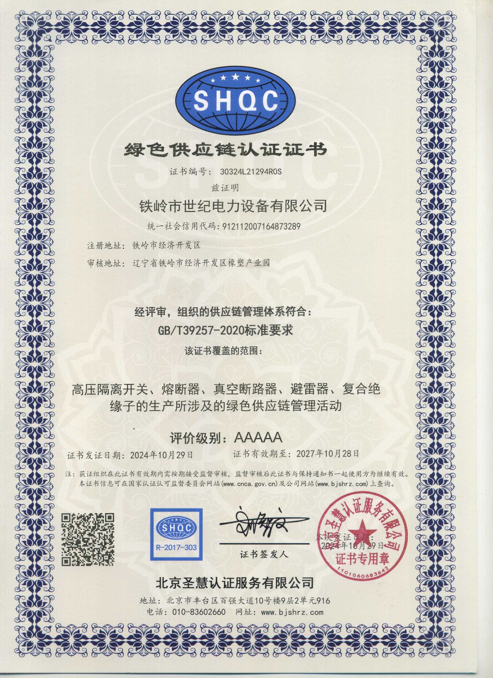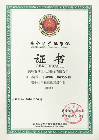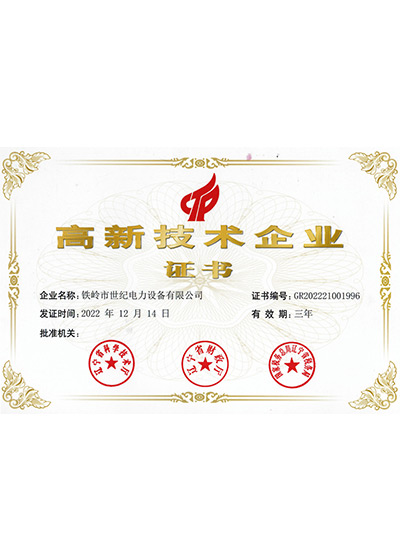 鐵嶺市世紀電力設備有限公司是集科研開發(fā)、生產制造、用戶服務于一體的國家高新技術企業(yè),始建于1999年,位于鐵嶺經濟開發(fā)區(qū),占地面積5萬余平方米,建筑面積2萬余平方米。主要從事國家電網配套戶外高低壓隔離開關、電力電纜、變壓器成套裝置、高低壓開關柜、箱式變電站、絕緣子等產品的研發(fā)、生產和銷售。公司現有國家發(fā)明專利6項、實用新型專利9項,公司通過了ISO9001國際質量管理體系認證、ISO14001環(huán)境管理體系認證和ISO 45001職業(yè)健康安全體系認證。